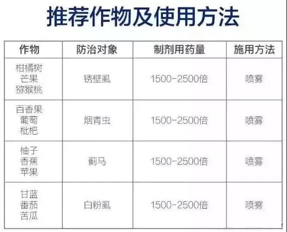 2.是一种广谱性杀虫、杀螨剂。对粘蛀、刺吸和咀嚼式害虫及螨类有优良的防效。