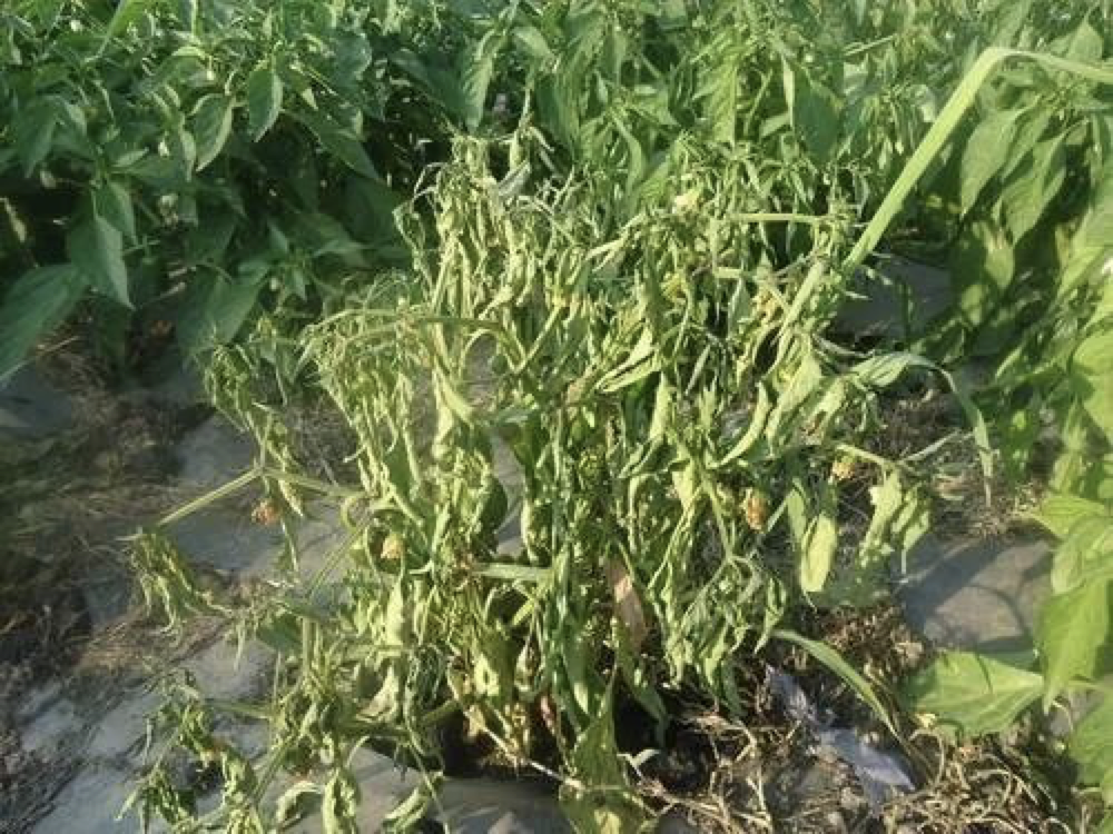 (3)灌根:在黄瓜、西瓜、番茄、辣椒、茄子、甜瓜等作物枯萎病、青枯病、黄萎病发病前,用10亿CFU/克多粘类芽孢杆菌可湿性粉剂500~700克/亩,兑水后灌根,每季灌根2~3次,基本上可完全控制住青枯病、枯萎病、黄萎病的发生。