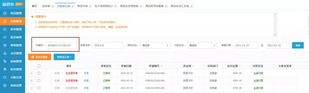 除以上功能更新之外,益佰农技术团队对商品批发、采购等模块、添加兽药商品提示绑定国家兽药产品追溯系统功能进行优化!
