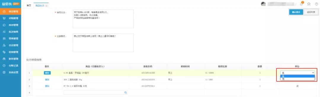 【优化】商品管理-商品处方模块,添加处方内商品可切换单位。