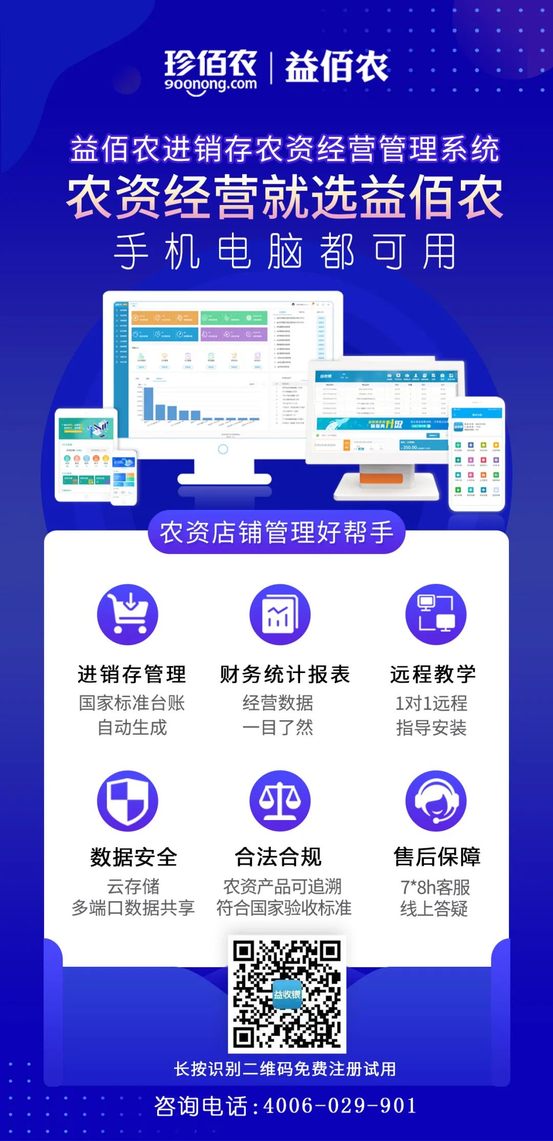 益佰农是一款集农药、种子、肥料、饲料、兽药于一体的农资进销存管理系统,包括ERP后台管理系统、益收银门店收银系统(电脑端)、益收银APP(手机端)、益收银(POS机端)、益老板多店铺管理系统等多端口系统应用,专为农资经销商、零售商、连锁店铺开发。