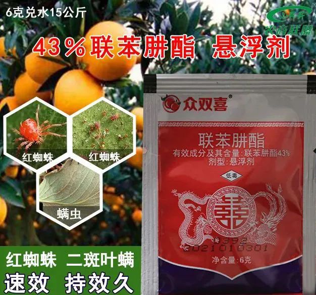 先介绍一个药物,它的名字叫乙螨唑,这种药对卵及幼螨有效,对成螨无效,但是对雌性成螨具有很好的不育作用。因此其最佳的防治时间是害螨危害初期。耐雨性强,持效期长达50天。另一种药叫螺螨酯,两种药对卵、幼若螨有效,但都对成螨无效,持效期都可达30天以上,但螺螨酯常年使用的部分地区叶螨有些抗性,乙螨唑是近两年兴起的长效杀螨剂,乙螨唑在低温条件下防效稳定,这两种杀螨剂复配阿维菌素或助剂都有一定的增效作用,并在螨害发生初期使用效果更佳,