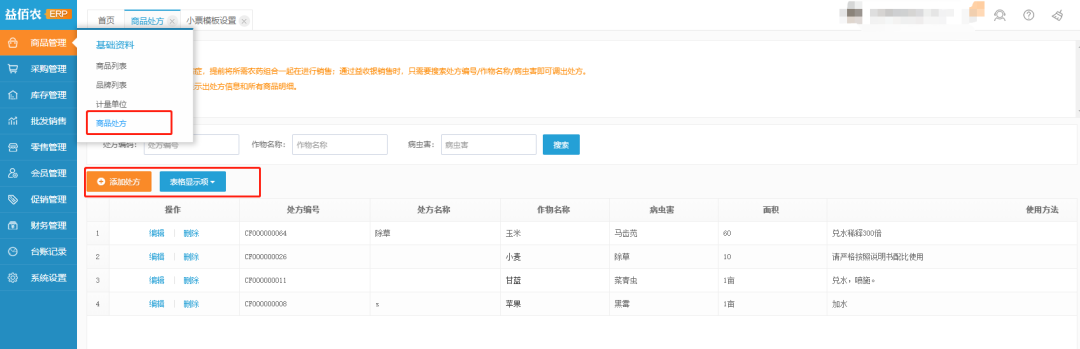 益佰农智慧农资经营系统的“商品处方”功能是很好的助手。