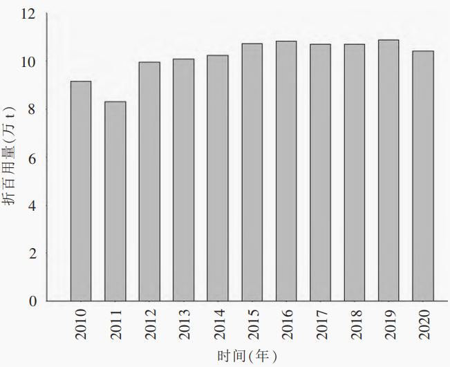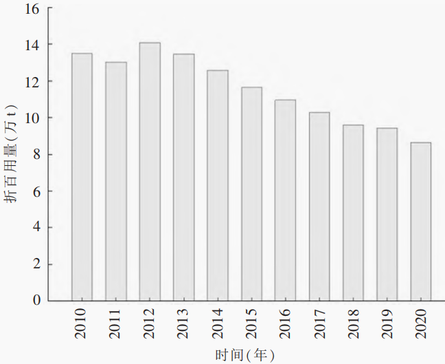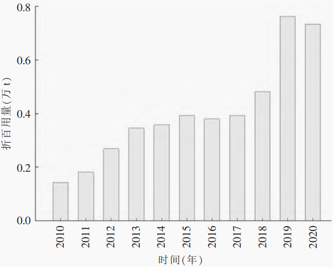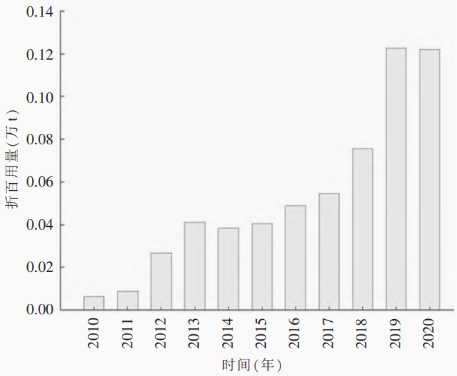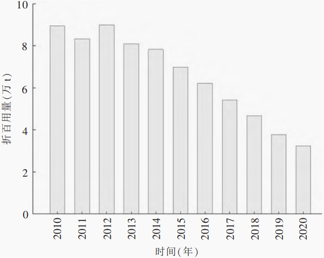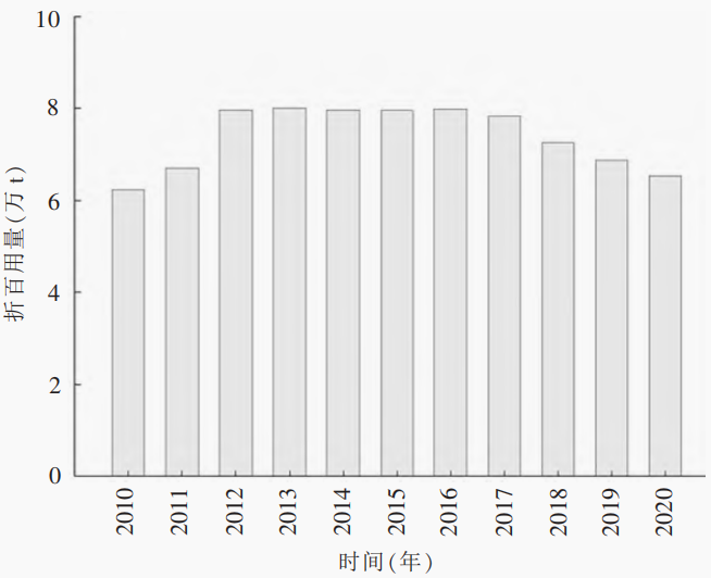 图6 2010—2020年全国氨基甲酸酯类农药折百用量