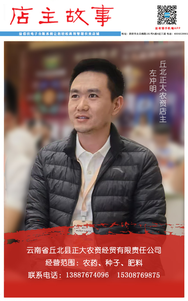 今天的故事主角左冲明,正是上述正大农资经贸有限责任公司店主,来自美丽云南丘北县,一位意气风发的年轻农资人,2013年正式开店,经营农资近9年。