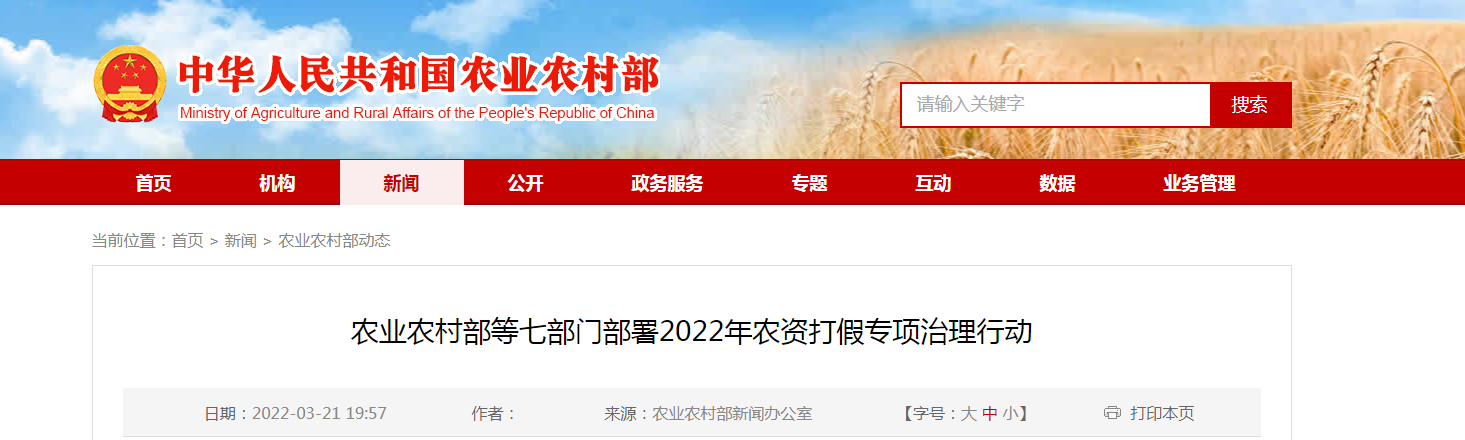 一年之计在于春,农资产品开始进入销售使用旺季。3月21日,农业农村部等七部门联合启动2022年全国农资打假行动,并公布了1起与畜牧相关的生产、销售假兽药典型案例。一起来看!