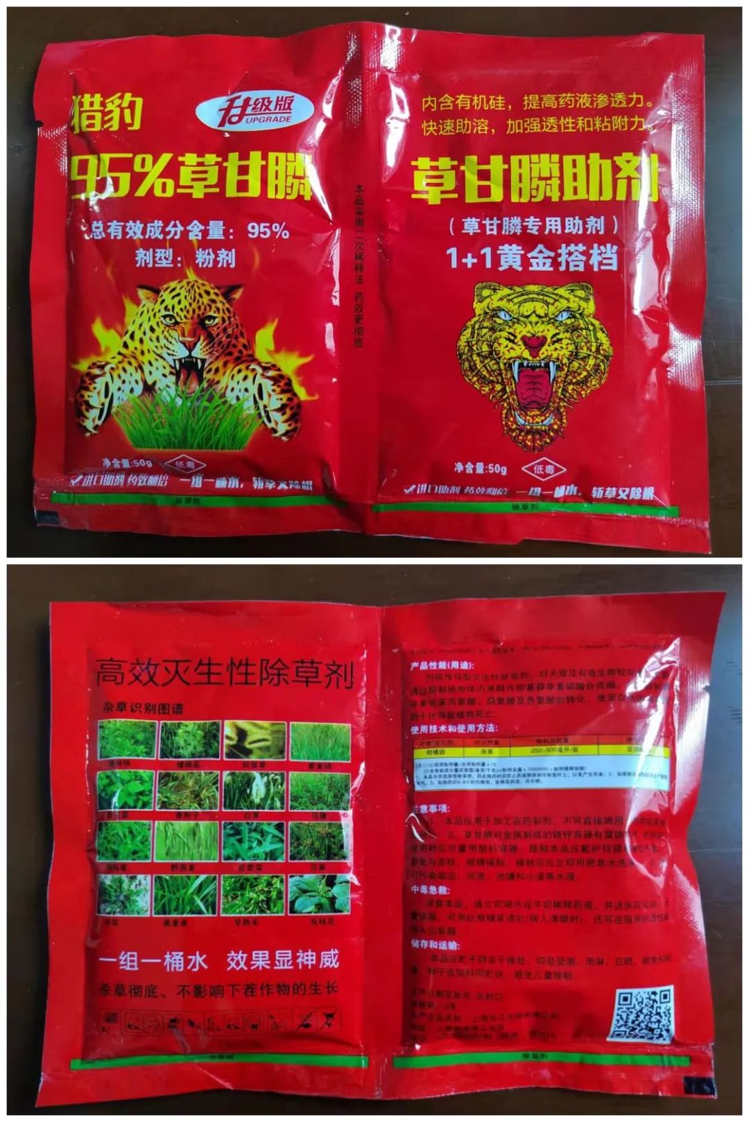 2021年11月30日,贵州省农业农村厅农安处在凤冈县检查农资市场时,在某农资经营部内发现“95%草甘膦”原粉,其产品包装标注有“进口助剂药效翻倍一组一桶水,斩草又除根”和“一组一桶水效果显神威”等广告字样,属标签和包装不符合规定的农药,疑似假农药,当场责令凤冈县综合行政执法局立案查处。