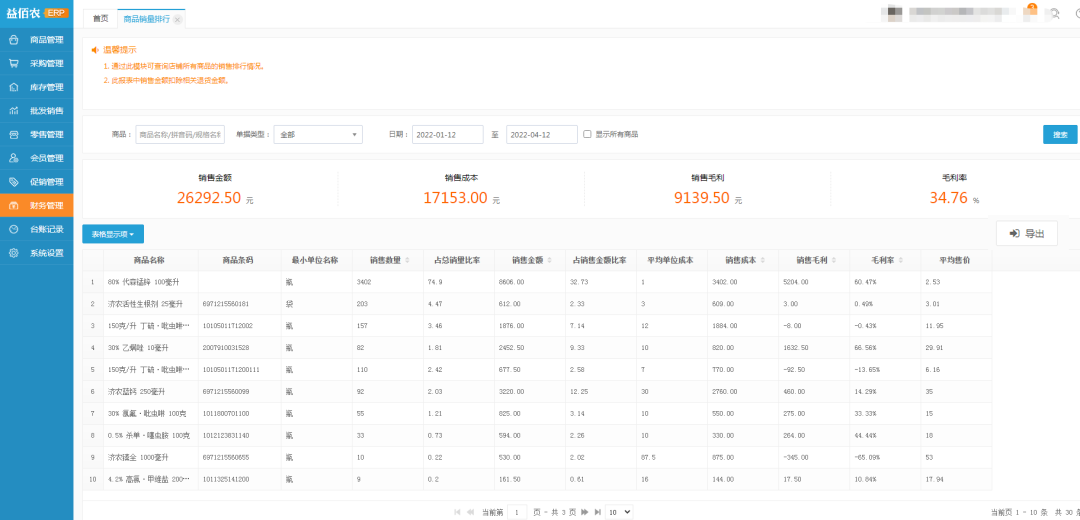 以上为益佰农ERP后台管理系统的数据报表功能~如果您还在为农资经营财务报表焦头烂额,不妨行动起来,学以致用,让益佰农成为您经营农资店铺的得力助手,助您清清楚楚管店,明明白白经营!