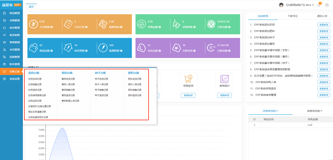 益佰农ERP系统各类农资台账与农药包装废弃物台账记录功能