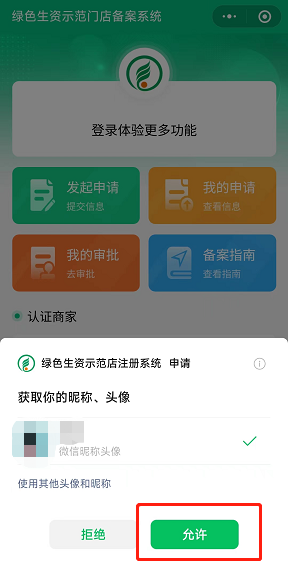 第二步:点击“登录体验更多功能” ,授权小程序获取昵称、头像,点击“允许”;