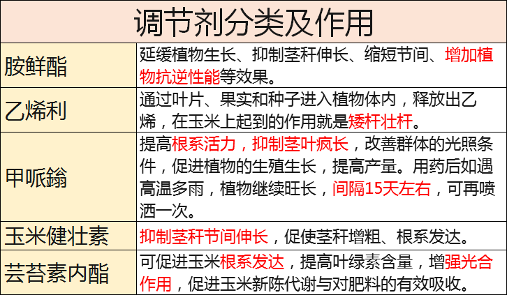 玉米上常用的植物生长调节剂有:胺鲜酯、乙烯利、甲哌鎓、芸苔素……为了方便大家选择,现汇总常见玉米调节剂的作用特点如下: