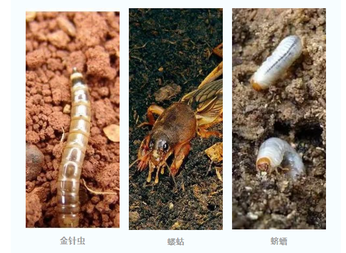 金针虫、蝼蛄、蛴螬等地下害虫,会在播种后啃食小麦种子,造成缺苗;