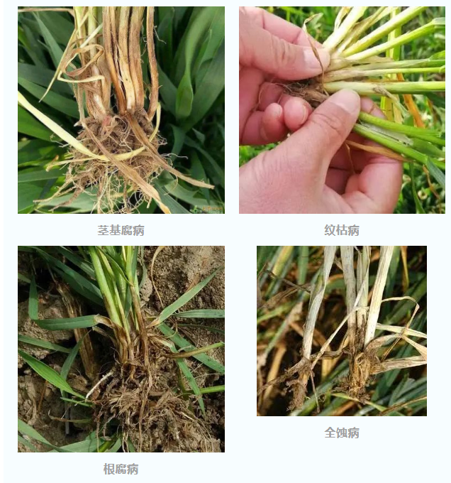 小麦常见的土传病害有茎基腐病、纹枯病、根腐病、全蚀病等,这些病害会阻碍植株营养供给,很容易导致小麦提前死亡,出现白穗症状。