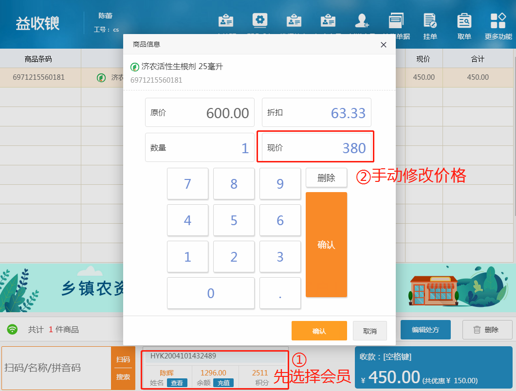 【优化】商品销售时,会员价支持手动调整,以最终手动改价为准;