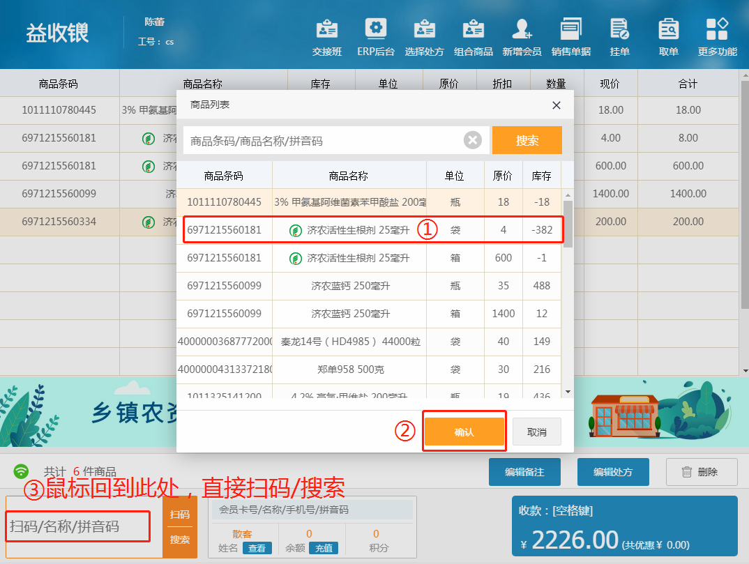 【优化】前台益收银销售时,选择商品后,光标自动回归到商品输入框中;