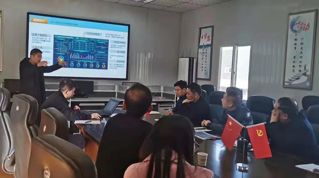 西安珍佰农业有限公司信息服务中心技术部高亮经理向支队领导汇报平台各个板块设计理念及功能细节。