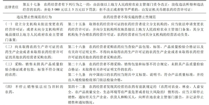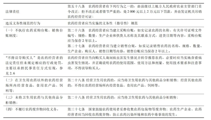 2.3 农药经营者违反《条例》禁止性规定和义务性规定的法律责任(第五十七条、第五十八条)