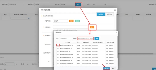 【应用场景】在填写采购单,首次新增供应商时,可根据营业执照/营业执照编号/法人姓名等信息搜索供应商并一键导入。