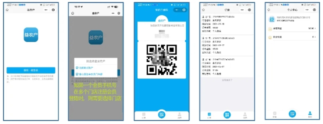 同时,每位农资经营户支持在ERP后台查看/下载各自门店的小程序码,打印张贴至店面,店铺农户/会员微信扫码登录后,可查看在本门店的购买记录、积分、余额信息。如果未在益佰农农资系统内注册会员,则无登录权限。