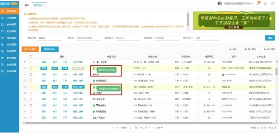 益佰农ERP系统后台产品展示页面绿色农药标识