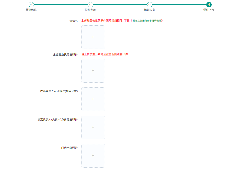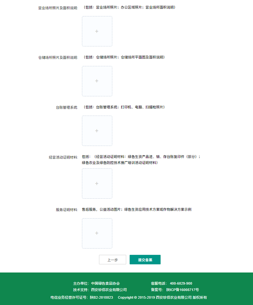 2、经营者店铺资料:注册资金、年销售额、农药经营许可证号、发证机关、单位类别(批发、批发兼零售、农事服务、零售)、经营品类(农药、肥料、种子、兽药、饲料等)、仓储面积、经营面积、门头尺寸、代理绿色生资认证产品企业数量、绿色生资代理单品数量、符合资质农技服务人员人数 |
