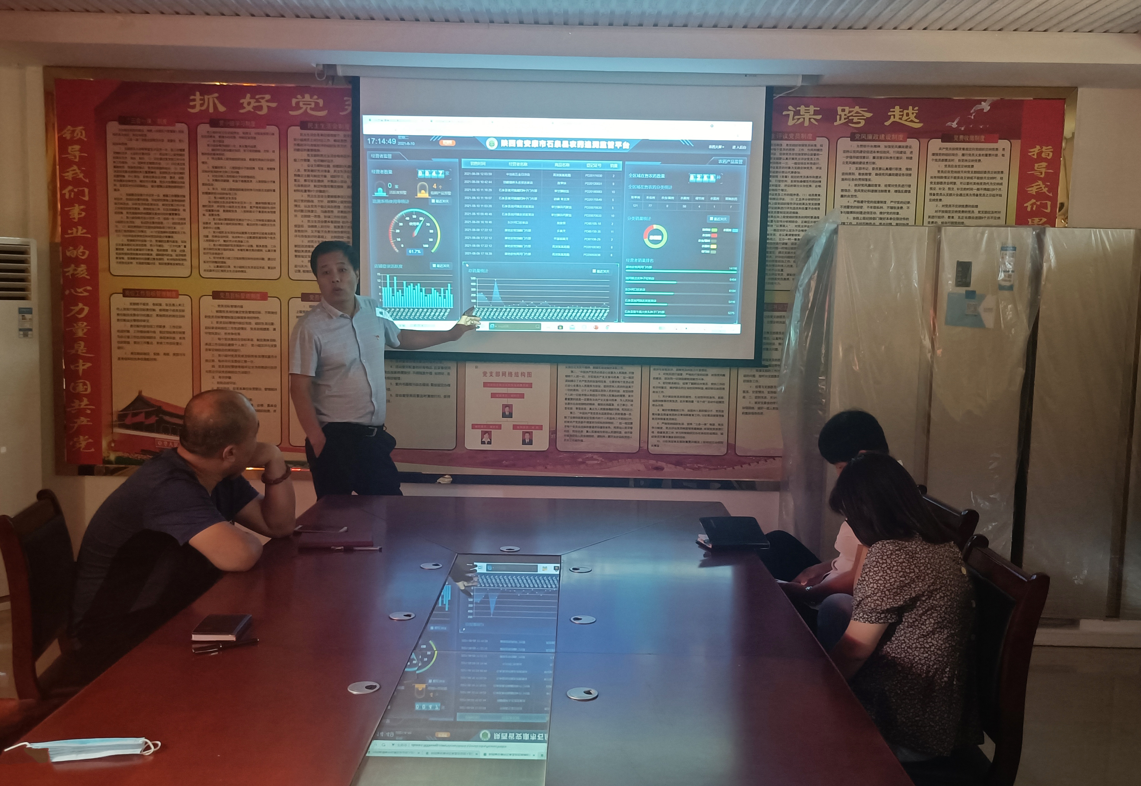 益佰农工作人员在本次培训会上详细演示了益佰农农业投入品大数据追溯平台,并对监督管理过程中所涉及的功能项:大数据追溯平台大屏看板(经营者监督管理、店铺登录活跃度、在售农药数量等)、定点经营管理、台账监督、包装物回收、双随机等进行重点说明,助力合阳县农药管理信息化转型更高效。
