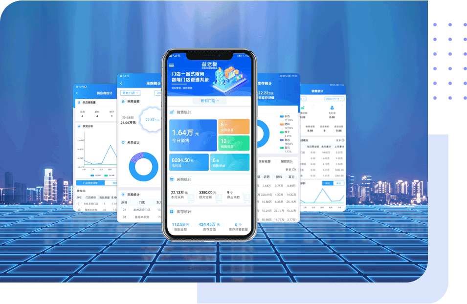 在多连锁店铺管理中,益老板将各个店铺实时产生的数据信息汇总在老板手机上,随时查阅。足不出户即可将多店收益了然于心,数据解析掌控全局。