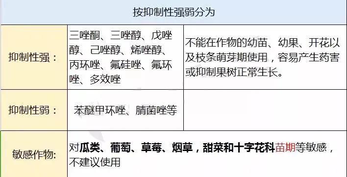 但并不是说所有的三唑类药剂都对作物有很强的抑制作用。三唑类药剂按抑制性强弱可分为: