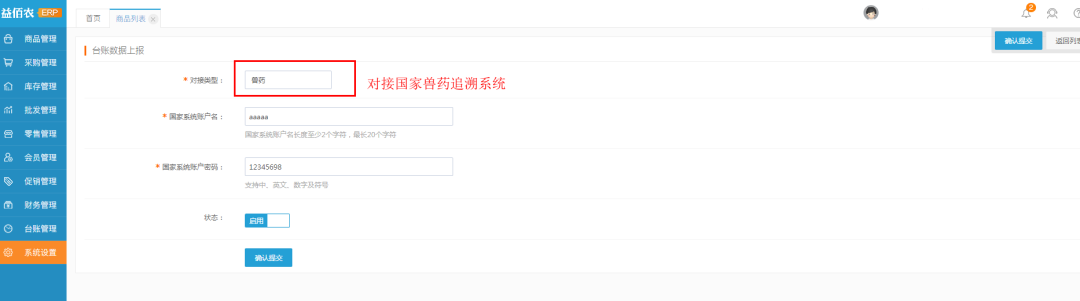 益佰农进销存管理系统对接国家兽药数据库,扫码识别商品真伪。在益佰农ERP后台绑定国家兽药产品追溯系统账号后,台账数据自动上报,及时上传兽药出库销售去向信息和购买对象信息。