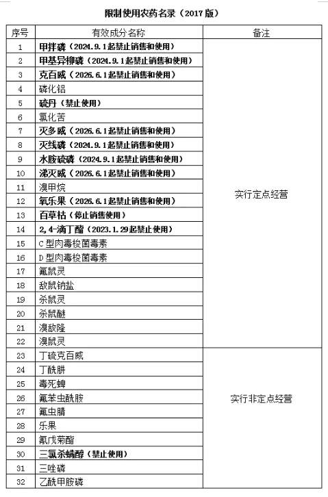 注:根据农业农村部相关公告,在限制使用农药名录(2017版,2567号公告)上标注最新淘汰措施。(来自农夫学法)