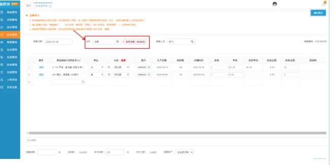 【应用场景】与零售会员余额扣款同理,在填写批发单时选择会员同样可进行余额扣款,并且在会员交易记录体现。
