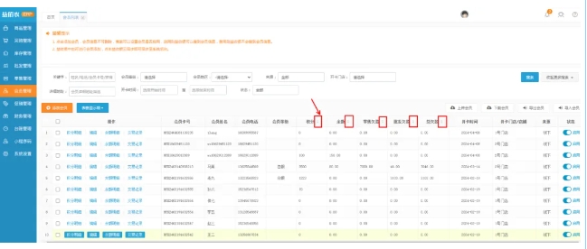 【新增】会员列表-积分、余额、零售欠款、批发欠款、总欠款排序功能;