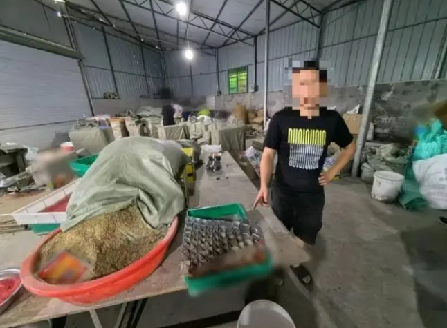 经查,上游生产制造端的犯罪嫌疑人从他人手中购买国家禁止的“氟XX胺”原液等化学品、定制包装袋、大米谷壳等原料,使用灌装机、打包机等设备。