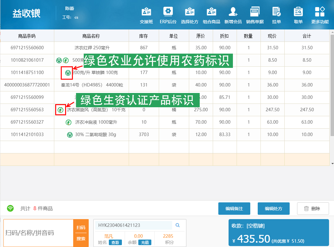 益佰农电子台账系统为解决绿色农药的识别判断问题,利用数据库智能筛选识别“绿色生资认证产品”及“绿色农业允许使用农药”让系统成为农资店推广和辨识绿色生资产品的有利工具。在绿色农药采购、销售过程中全程使用扫描设备及销售追溯系统,并按照相关规定上传和保留可追溯的销售流通信息,确保店面所销售产品来源可查询、产品可验证、流向可追溯,助力绿色农业发展。
