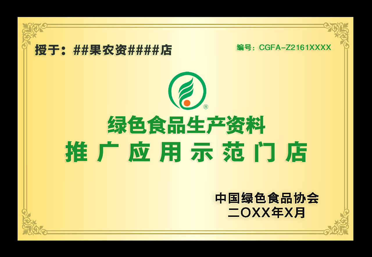 绿色生资示范店申报并按要求创建完成后,经中国绿色食品协会及绿色生资专委会验收合格后,最终对绿色生资示范店进行授牌。至此,绿色生资示范店认证完成。